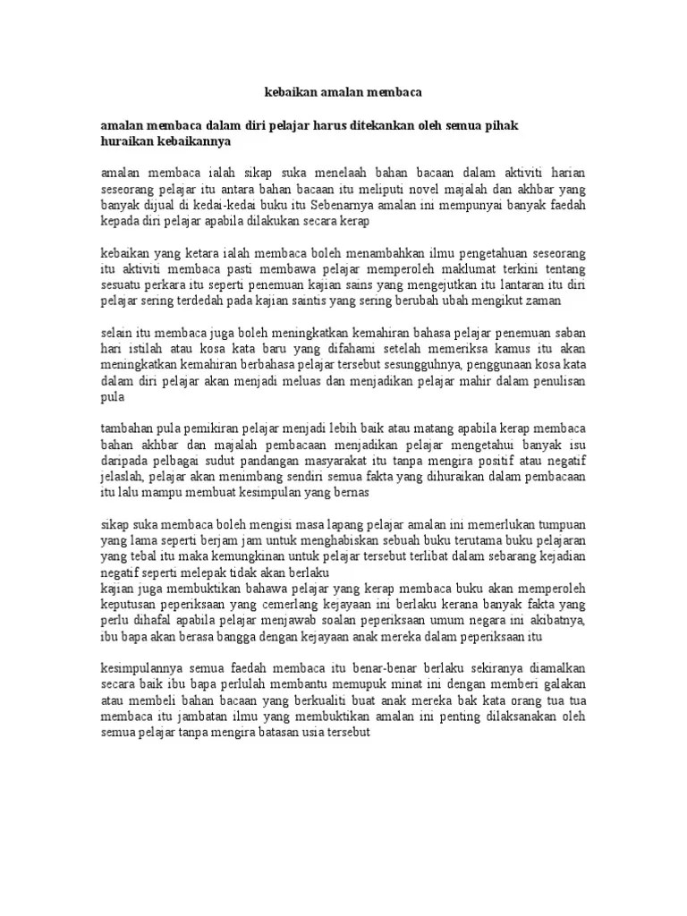 Membaca adalah salah satu amalan yang amat berfaedah. Contoh karangan faedah membaca موضوع المقالة. Membaca adalah salah satu amalan yang amat berfaedah. Mereka yang mempunyai tabiat ini dapat banyak kelebihan dan manfaat. Di samping itu, amalan membaca dapat menambahkan perbendaharaan kata dan. Membaca adalah salah satu amalan yang amat berfaedah. Soalan bahasa inggeris tahun 4 2019 soalan bahasa inggeris tahun 1 soalan. Saturday 22 september 2012 1230 am 0 . Lagi karangan bahasa arab berbaris. Soalan bahasa inggeris tahun 4 2019 soalan bahasa inggeris tahun 1 soalan.